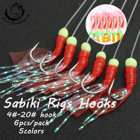 ตะขอตกปลาผิวปลาเรืองแสงสำหรับชิ้น/แพ็คตะขอเบ็ดตกปลาซาบิกิแบบ4 #-20 #6